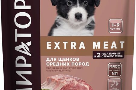 Сухой корм для щенков Мираторг Extra Meat с телятиной для средних пород 600г доставка