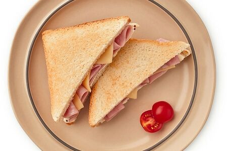 Сведения о составе: Хлеб для тостов [мука пшеничная хлебопекарная высшего сорта, вода питьевая, масло подсолнечное дезодорированное, дрожжи хлебопекарные, соль поваренная пищевая, сахар, молоко сухое цельное, комплексная пищевая добавка- улучшитель хлебопекарный (соевая мука, стабилизатор- карбонат кальция, антиокислитель -аскорбиновая кислота), комплексная пищевая добавка (мука пшеничная, консервант- пропионат кальция, антиокислитель- аскорбиновая кислота)], ветчина из мяса птицы [филе индейки, филе грудки курицы, вода, свинина, крахмал картофельный, соевый белок, шкура свиная, соль, стабилизатор (каррагинат и его натриевая, калиевая, аммонийная соли, включая фурцеллеран), загустители (ксантановая камедь, конжаковая камедь), регуляторы кислотности (трифосфат натрия 5- замещенный, ацетат натрия, диацетат натрия, цитрат натрия 3-замещенный), антиокислитель (изоаскорбат натрия), желирующий агент (хлорид калия), мальтодекстрин, декстроза, усилитель вкуса и аромата (глутамат натрия 1-замещенный),ароматизатор, гемоглобин, чеснок, краситель (кармины), фиксатор окраски (нитрит натрия)], сыр полутвердый [пастеризованное молоко, мезофильные заквасочные микроорганизмы, молокосвертывающий ферментный препарат животного происхождения, соль, уплотнитель-хлорид кальция, консервант- нитрат натрия], майонез классический [масло подсолнечное, вода, уксус, сахар, яичный желток, соль, загустители (ксантановая и гуаровая камеди), регулятор кислотности молочная кислота, консерванты (сорбиновая кислота, бензоат натрия), эфирное горчичное масло, краситель каротин], горчица дижонская [вода, семена горчицы, уксус спиртовой, соль, регулятор кислотности лимонная кислота, антиокислитель пиросульфит калия], горчица зернистая [вода, семена горчицы, уксус спиртовой, соль,сахар, пряности, ароматизатор натуральный].Пищевая ценность: 524,23.1,31.5,37.3Условия хранения: 6,2Срок годности в днях: 4Страна изготовления: РоссияСведения об упаковке: Вакуумная упаковкаПроизводитель: Перекресток вкусов