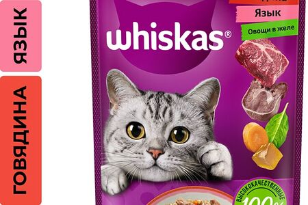 Влажный корм для кошек Whiskas Аппетитный микс полнорационный с говядиной языком и овощами в желе 75г доставка
