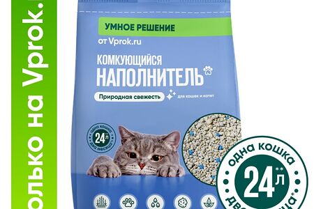 Наполнитель комкующийся для туалета кошек Умное решение от Vprok.ru Природная свежесть 10кг 24л – эксклюзивное предложение, доступное только для покупателей Vprok.ru. Наполнитель для кошачьих туалетов изготовлен из природного материала – бентонитовой глины. В его состав также входит безопасная натуральная отдушка с ненавязчивым освежающим ароматом. При контакте с влагой небольшие глиняные гранулы образуют прочный комочек, который вы легко сможете удалить из лотка при помощи совка. Наполнитель поглощает неприятные запахи, не пылит и не прилипает к лапкам животных. Вес: 10кг (впитываемость 24л). При правильном применении этого объема хватит на срок до 2 месяцев (при наличии одной кошки).