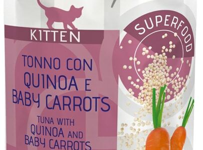 Влажный корм для котят Monge Supreme kitten из тунца с киноа и мини-морковью 80г - это натуральное питание для котят всех пород. В его основе лежит мясо тунца, который является источником белка высокой пищевой ценности. Корм обогащен такими суперфудами, как киноа и мини-морковка, а также витамином Е и ФОС. Все ингредиенты приготовлены на пару. Не содержит злаков, ГМО, искусственных красителей и ароматизаторов. Суточная норма кормления: для растущих котят - 3-4 пауча.