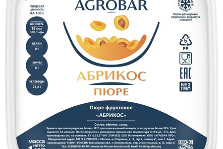 Сведения о составе: Абрикос, сахарПищевая ценность: 86,0,0,21.4Условия хранения: -18,-18Срок годности в днях: 365Страна изготовления: РоссияСведения об упаковке: Пластиковая упаковкаПроизводитель: Агробар про