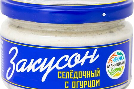 Сельдь рубленная соленая Меридиан Закусон селедочный с огурцом 170г доставка