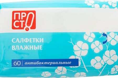Салфетки влажные ПРОСТО антибактериальные 60шт доставка