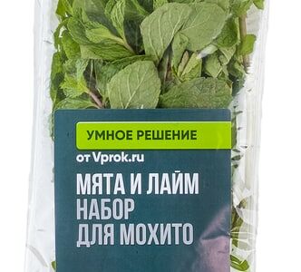 Набор для мохито Умное решение от Vprok.ru Мята и лайм 150г упаковка поможет вам приготовить легендарный освежающий коктейль в домашних условиях. В его состав входят: пучок свежей мяты и сочный лайм. Мохито – один из самых популярных летних коктейлей, который ассоциируется с жарким солнцем, зажигательными танцами и шумом морского прибоя. Алкогольная версия напитка готовится на основе белого рома с добавлением перечной мяты, содовой, сахара, лайма и льда. Безалкогольный вариант включает все те же ингредиенты за исключением рома. Попробуйте также добавить в напиток клубнику, имбирь или веточку розмарина – тогда он приобретет совершенно новые оттенки вкуса! Набор можно использовать для приготовления чая и компота.