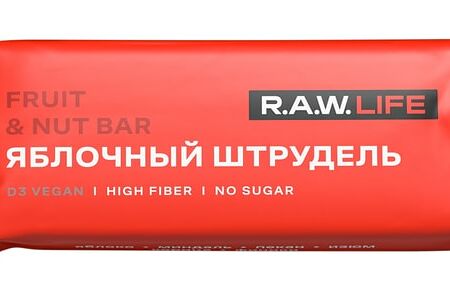 Батончик R.A.W. LIFE Яблочный штрудель 47г – вкусное и полезное лакомство, которое отлично подойдет для перекуса в течение дня. Изготовлено на основе натуральных ингредиентов без добавления сахара, красителей, ароматизаторов и консервантов. Обладает приятным вкусом с нотками свежеиспеченного яблочного штруделя и редкого ореха пекан. Рецептура батончика дополнительно обогащена витамином Д3, которого так не хватает организму в холодное время года. Продукт служит источником пищевых волокон, необходимых для комфортного пищеварения. Не содержит лактозы и глютена. Благодаря индивидуальной упаковке и компактному размеру питательный снек всегда можно взять с собой на учебу, на работу, в спортзал или в дорогу.