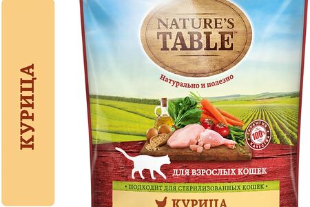 Сухой корм для кошек Natures Table Курица 650 г — полнорационное сбалансированное питание из 100% натуральных ингредиентов, разработанное с учетом потребностей питомцев от 1 года с умеренной активностью. В основе корма — животный белок, обладающий высокой усвояемостью и способствующий росту и укреплению мышц, а также овощи и злаки — природный источник углеводов, минералов, микроэлементов и витаминов, обеспечивающий здоровье пищеварительной системы и влияющий на состояние кожи и шерсти. Не содежит сои, искусственных красителей, усилителей вкуса и консервантов. Подходит для стерилизованных кошек. Отдавая предпочтение дегидратизированному корму, следите за тем, чтобы в миске питомца всегда была свежая вода.