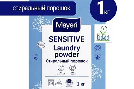Стиральный порошок Mayeri Sensitive Универсальный Эко 1кг европейское экологичное средство, разработанное с заботой об окружающей среде и здоровье человека. Прекрасно подходит для стирки вещей маленьких детей, аллергиков, астматиков, людей с чувствительной кожей. Уникальная формула с легкостью устраняет загрязнения с белых и цветных изделий, при этом не нарушая структуру тканевых волокон, а также предотвращает образование накипи на деталях стиральной машины. Порошок не содержит фосфатов, искусственных красителей, ароматизаторов и прочих агрессивных компонентов. Он эффективно работает даже в теплой воде и может использоваться как для машинной, так и для ручной стирки. Одобрен дерматологами. Имеет сертификат качества ECOLABEL.