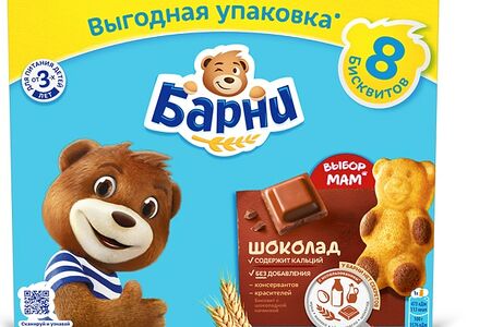 Бисквитное пирожное "Барни" с шоколадной начинкой — специально разработанное для детей кондитерское изделие в виде медвежонка, которое производится на основе натуральных ингредиентов: злаков и молочных продуктов. Обогащено кальцием, необходимым для здорового роста и развития детей, не содержит красителей и консервантов. Рекомендовано для детей дошкольного возраста от 3 лет. "Медвежонок Барни" — вкусный, полезный и питательный перекус, прекрасная альтернатива печенью, кексам или другой сладкой выпечке, отлично сочетается с соком, молоком, кефиром, йогуртом, чаем или какао, его удобно брать с собой в дорогу, давать ребенку в школу или на прогулку. Это отличный вариант сладкого угощения на детский праздник в детский сад, школу, на день рождения. В коробке шесть пирожных в индивидуальных упаковках. "Мишка Барни" — это выбор мам, 83% мам купили бы этот вкусный десерт для своего ребенка.