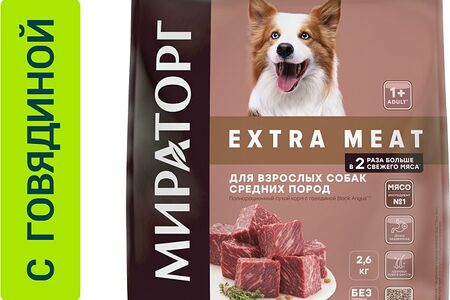 Сухой корм для собак Мираторг Extra Meat с говядиной Black Angus для средних пород 2.6кг доставка