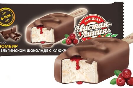 Мороженое Чистая Линия Пломбир в бельгийском шоколаде с клюквой 12% 80г доставка