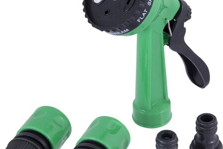 Набор для полива Park HL061 5 предметов предназначен для направленного полива плодовых, овощных, декоративных культур и прочих растений. Состоит из пистолета, адаптера на 3/4 дюйма с внешней резьбой, адаптера на 3/4 дюйма с внутренней резьбой, соединителя для шланга 1/2 дюйма, соединителя для шланга 1/2 дюйма с аквастопом. Все изделия изготовлены из ударопрочного ABS пластика. Пистолет оснащен 4 режимами полива, переключение которых осуществляется без особых усилий. Эргономичная ручка обеспечивает надежный и удобный хват. Упаковка блистер. Продукция Park производится в Китае в соответствии с международными стандартами качества.