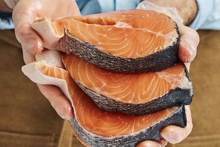 Стейк из семги из замороженного сырья Чили – аппетитные кусочки красной рыбы, которые отлично подойдут для жарки, запекания, приготовления на пару, гриле или мангале. Семга является продуктом аквакультуры, то есть ее выращивают на специальной рыбной ферме в Чили. Сразу после отлова рыбу подвергают шоковой заморозке, позволяющей сохранить ее высокую питательную ценность и вкусовые качества. Тушки разморозят и разделают непосредственно в день вашего заказа, поэтому вы можете быть уверены в 100% свежести стейков. Семга очень полезна для организма: она благотворно влияет на работу сердца и головного мозга, укрепляет кровеносные сосуды, оказывает положительное воздействие на нервную систему и опорно-двигательный аппарат, нормализует обмен веществ.