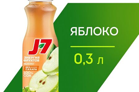 Сок J7 100% Яблоко осветленный 300мл – 100% натуральный напиток, который отлично подойдет как для взрослых, так и для детей с 3-х лет. Изготовлен из отборных спелых яблок без добавления сахара, красителей, ароматизаторов и консервантов. Обладает насыщенным кисло-сладким вкусом. Содержит калий, полезный для сердечно-сосудистой системы, и антиоксиданты, необходимые для защиты клеток от негативного влияния окружающей среды. Сок прекрасно утоляет жажду, способствует укреплению иммунитета, оказывает тонизирующее действие на организм. Небольшую бутылочку можно взять с собой куда угодно: на работу, на учебу, на прогулку, в дорогу. Зарядитесь энергией вкусных фруктов вместе с J-7!