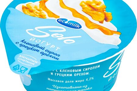 Йогурт Экомилк кленовый сироп с грецким орехом 4.2% 130г – нежный десерт с густой консистенцией и приятным, в меру сладким вкусом. Производится на основе натурального молока на современном российском предприятии, оснащенном высокотехнологичным оборудованием. В его составе также присутствуют дробленые грецкие орешки и кленовый сироп – они придают лакомству особую прелесть и делают его неповторимым. Йогурт – это полезный кисломолочный продукт, который служит источником витаминов и минералов, помогает укрепить иммунитет, улучшает пищеварение. Ecomilk Solo – это новая линейка молочных десертов, которые помогут вам отвлечься от повседневной серости и ощутить прилив вдохновения.