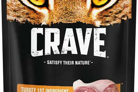 Влажный корм для кошек Crave Индейка 70г - полноценный рацион для взрослых кошек всех пород. На 99% состоит из натуральных кусочков мяса, в том числе не менее 35% индейки, курицы и говядины в аппетитном желе. Также в нем содержатся минеральные вещества, витамины А и D3. Благодаря этому корм насыщает белком, который так важен для развития мускулатуры, поддержания организма в тонусе и получения заряда энергии на весь день. Не содержит кукурузы, пшеницы, сои, молочных продуктов, искусственных красителей, консервантов и ароматизаторов. Рекомендуется соблюдать нормы питания в соответствии с весом вашей кошки.