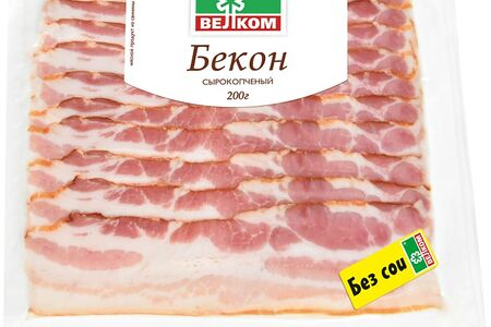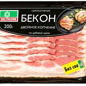 Бекон Велком сырокопченый 200г - это мясной деликатес, приготовленный из свинины особого откорма. При термической обработке жировые прослойки подтапливаются, а мясо получается сочным, с аппетитной корочкой. Для его производства использовалось охлажденное мясо от лучших российских поставщиков и натуральное копчение. Как и вся продукция торговой марки, бекон не содержит химических добавок, сои и ГМО. Вакуумная упаковка позволяет сохранить органолептические свойства продукта в течение всего срока годности.