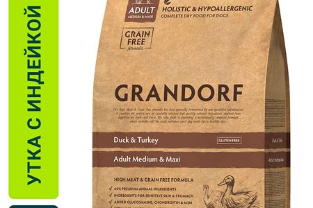 Сухой корм для собак Grandorf Adult Medium & Maxi для средних и крупных пород с уткой и индейкой 3кг доставка