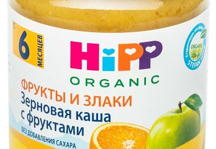 Каша HiPP Зерновая с фруктами 190г – органическое лакомство, изготовленное на основе нежного пюре из яблок, бананов, манго и апельсинов с добавлением пшеничной муки грубого помола и цельнозерновой овсяной муки. Рекомендуется для питания детей с 6 месяцев. Обладает нежной консистенцией и приятным вкусом. Не содержит добавленного сахара, молочного белка, консервантов, красителей и ароматизаторов. Идеально подходит для полдника. Эта уникальная готовая кашка служит источником витаминов, микроэлементов и клетчатки, благотворно влияет на работу ЖКТ и обеспечивает ребенка необходимой энергией. Все фрукты и злаковые культуры, входящие в ее состав, выращены в естественных условиях без применения химических удобрений и пестицидов.