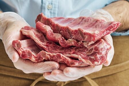 Рагу из свинины ребра – охлажденный продукт, представляющий собой кусок реберной части свиной туши. Свинину закупают исключительно у проверенных поставщиков и разделывают непосредственно в день заказа при температуре не выше 4-6°С с соблюдением всех санитарных норм. Свиные ребрышки с насыщенной мясной прослойкой – это вкуснейший деликатес, который покорит даже самых требовательных гурманов. Их можно запекать в духовке, готовить на гриле, обжаривать на сковороде, добавлять в супы и рагу – в любом случае ваши домашние будут в восторге! Подавать их можно с любыми гарнирами: рисом, картофелем, макаронами, свежими овощами. Продукция не содержит гормонов роста, антибиотиков и ГМО.