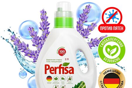 Гель для стирки Perfisa Бережная стирка 2л - гипоаллергенное средство, созданное для безупречного результата. Особенно эффективен против пятен пота, жирных пятен растительного и животного происхождения, подсолнечного, оливкового, сливочного масла, пятен от куриного и свиного жира. Глубоко проникает в волокна ткани и отстирывает самые сложные жирные пятна. Одобрен дерматологами: безопасен для нежной кожи, подходит для детской одежды и игрушек. Безопасен для септиков и экологически значимых мест. Не содержит агрессивных компонентов, фосфатов, хлора и парабенов. Растворяется даже в прохладной воде от 20°C. Выполаскивается из ткани, не оставляя разводов и следов на одежде. Эффективен на коротких режимах стирки от 15 минут. Подходит для высокотемпературных режимов стирки до 85-90°C. Удаляет неприятные запахи и дарит белью приятный аромат «Лаванда».