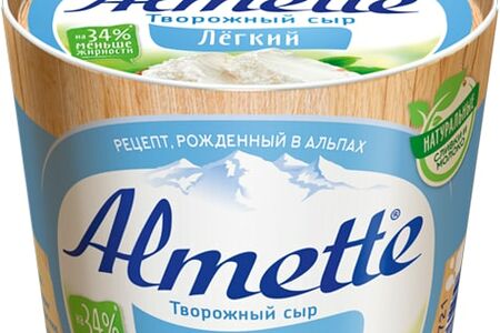 Сыр творожный "Almette" легкий, 53%, 150г приготовлен из свежего натурального молока и сливок. Он обладает мягкой рассыпчатой творожной текстурой и выразительным сливочным вкусом. Нежный сливочный сыр прекрасно дополняет закуски, становится еще нежнее на теплой ароматной брускетте в сочетании с томатами и базиликом. С легким сыром "Альметте" получаются чудесные завтраки, он идеален для приготовления простых тостов на завтрак, оладьев с бананом или аппетитных блинчиков. Легкий творожный сыр обладает таким же нежным вкусом, как и классический "Альметте" сливочный, однако в нем на 34% меньше жирности. В качестве намазки творожный сыр прекрасно гармонирует с галетами и круассанами. Дополнить такое несложное блюдо можно фруктами, ягодами, рыбной или мясной нарезкой – отличное решение для перекуса. А на десерт можно побаловать себя кусочком галеты со смородиной и начинкой из сливочного сыра. Продукт заключен в удобную баночку с герметичной крышкой и фольгированным слоем. Она служит практичным контейнером для хранения сыра в холодильнике.