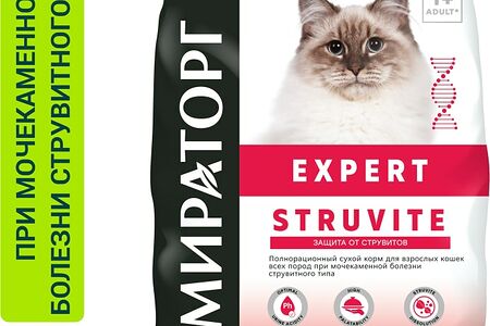 Сухой корм для кошек Мираторг Expert Struvite при мочекаменной болезни струвитного типа 1.5кг доставка