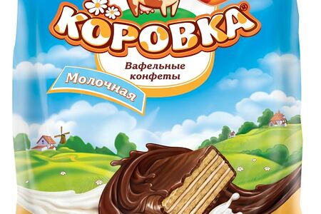 Хрустящие вафельные конфеты Коровка: крупный слоеный квадратик из нежных вафельных пластин и светлой кремовой начинки, покрытый тонким слоем шоколадной глазури. Насыщенный молочный вкус и аромат, приправленный шоколадным акцентом, и воздушный вафельный хруст – отличная компания для горячего чая и кофе.