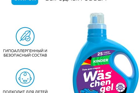Гель для стирки WAS Chen gel Kinder для детского белья 1л доставка