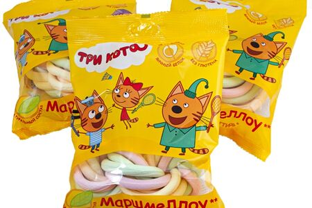 Маршмеллоу Три кота Спагетти 80г – натуральное лакомство, которое непременно порадует любого ребенка! Производится на современной российской фабрике в виде длинных спагеттин трех цветов — розового, желтого и зеленого. Не содержит глютена и яичного белка, способных вызывать аллергические реакции. Десерт обладает нежным ванильным ароматом и приятным, в меру сладким вкусом. Он отлично подойдет для креативного украшения детского праздничного стола и веселых соревнований из разряда: «Кто быстрее всех заплетет из воздушных спагеттин косичку» или «Кто быстрее всех съест длинную зефирку». Яркая упаковка с изображением главных героев мультфильма «Три кота» надежно сохраняет свежесть маршмеллоу в пределах всего срока годности.
