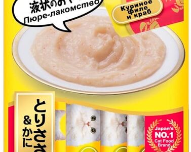 Лакомство-пюре на основе куриного филе с крабом — лакомство в дополнение к основному рациону. Суперпремиальное лакомство-пюре на основе нежного филе фермерской курицы с добавлением краба Ciao Churu от японского производителя Inaba изготовлено исключительно из натуральных ингредиентов и отличается высоким процентом влажности, благодаря чему поддерживается водный баланс организма кошки. Корма и лакомства Inaba отличаются высоким качеством и неповторимым вкусом, ведь они изготавливаются только из отборных традиционных японских ингредиентов! Удобная упаковка позволяет кормить питомца прямо с рук, используя лакомство для поощрения или дрессировки. Также его можно использовать в качестве топпинга к сухому или влажному корму. Во все продукты добавлен экстракт зеленого чая, который благодаря содержанию катехина обладает нейтрализующим действием на запах содержимого кишечника. Корм обогащён витамином Е — натуральным антиоксидантом, поддерживающим иммунную систему, не содержит искусственных добавок, красителей и консервантов.