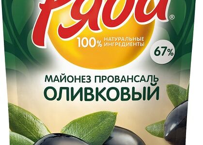 Майонез Ряба Провансаль Оливковый 67% 233г - это 100% натуральный продукт, приготовленный по уникальному рецепту. В его состав входит подсолнечное и оливковое масла, эфирное горчичное масло и яйца от "счастливых курочек" (условия содержания несушек максимально приближены к естественным). Вкус у майонеза немного острый, с легкой кислинкой, консистенция однородная, цвет кремово-желтый. Не содержит искусственные консерванты, красители, ароматизаторы, крахмал и ГМО. Продукт становился победителем программы "Контрольная закупка" на Первом канале.