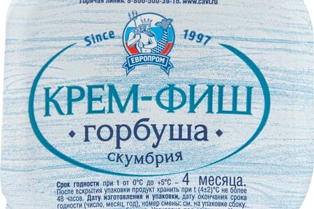 Сведения о составе: вода питьевая, масло растительное; горбуша; скумбрия атлантическая; соевый белок; молочный белок; сахар; смесь специй и пряностей; желток яичный сухой; соль; загустители — Е1422, гуаровая камедь; регуляторы кислотности уксусная, лимонная кислоты; консерванты-сорбат калия, бензоат натрия.Пищевая ценность: 300,9,28,3Условия хранения: 10,2Срок годности в днях: 120Страна изготовления: РоссияСведения об упаковке: Пластиковая упаковкаПроизводитель: Европром