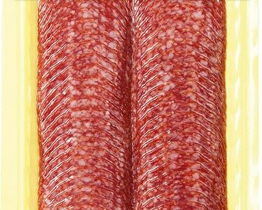 Сведения о составе: Свинина, шпик, мясо кур, нитритно-посолочная смесь (соль, фиксатор окраски (нитрит натрия)), белок животный говяжий, усилитель вкуса и аромата (глутамат натрия), пряности молотые (перец белый, чеснок),  ароматизаторы (перец черный, перец белый), антиокислитель (изоаскорбат натрия), глюкоза, краситель (кармины), стартовая культура.Пищевая ценность: 440,20,40Условия хранения: 6,0Срок годности в днях: 90Страна изготовления: РоссияСведения об упаковке: Вакуумная упаковкаПроизводитель: Иней