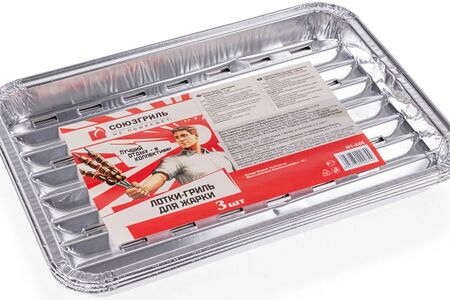 Лотки-гриль Союзгриль для жарки 34*23.5*4см 3шт - это одноразовые алюминиевые формы для запекания мяса, птицы, рыбы, овощей и морепродуктов на открытом огне. Преимущества использования такой посуды очевидны. Во-первых, в ней можно готовить кусочки разного размера, не боясь, что они провалятся на горящие угли. Во-вторых, вы можете добавлять ингредиенты, требующие минимальной тепловой обработки, в процессе приготовления. В-третьих, можно готовить три разных блюда одновременно. В-четвертых, такие лотки не нужно мыть (после использования их следует выбрасывать как бытовой мусор).