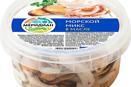 Морской микс Меридиан в масле 180г производится из мидий и кальмаров, выловленных у юго-западного побережья Латинской Америки (преимущественно, у берегов Чили). Отборное сырье очищается и обрабатывается по современным технологиям, позволяющим максимально сохранить аккуратный внешний вид и уникальный вкус продукта. Отварные мидии, мясо и щупальца кальмаров в растительном масле - это готовый к употреблению деликатес, который можно сразу подавать к столу в качестве изысканной закуски или использовать для приготовления легких салатов и горячих блюд.