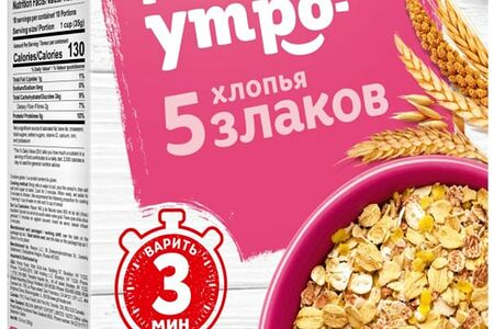 Хлопья Увелка 5-ти зерновые тонкие 350г приготовлены из цельных зерен овса, пшеницы, ячменя, пшена и ржи, прошедших двухэтапную очистку от примесей, лузги и битых ядер. Чистые отборные зерна подвергаются бережной обработке путем резания и сплющивания, в результате которых получается 100% натуральный продукт, сохранивший всю пользу цельных злаков. Имея под рукой такие хлопья, приготовить быстрый, вкусный и полезный завтрак вам не составит никакого труда: доведите до кипения воду или молоко, засыпьте в кастрюлю хлопья (из расчета 0.5 стакана сухого продукта на 1 стакан жидкости) и проварите в течение 3-5 минут. Подавайте кашу со сливочным маслом, ягодами, вареньем, медом или сухофруктами.