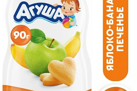 Пюре Агуша Яблоко-банан-печенье 90г изготовлено из пюре спелых яблок и бананов с добавлением концентрированного яблочного сока и аромата печенья. Без сахара, консервантов, красителей и ГМО. Рекомендуется давать детям с 6-месячного возраста, начиная с 0,5 чайной ложки в день, постепенно увеличивая к 12 месяцам до 100 грамм. Мягкая упаковка с крышечкой позволяет малышу есть самому без ложечки. Обратите внимание: перед введением нового продукта в рацион ребенка обязательно проконсультируйтесь с вашим педиатром!