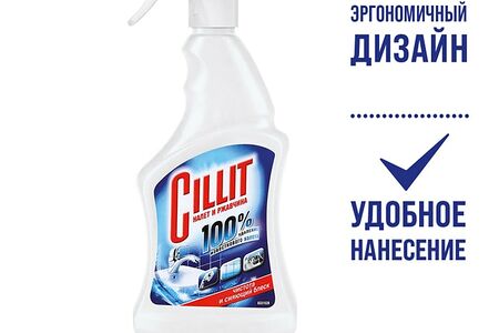 Средство чистящее Cillit Налет и ржавчина 450мл надежный помощник в борьбе с известковым налетом, образующимся от воздействия жесткой воды, и с коррозией металлических поверхностей. Идеально подходит для уборки в ванной и на кухне, в том числе для чистки изделий из нержавеющей стали, хромированных поверхностей, плитки, фарфора, стекла и пластика. Экономично расходуется. Удобный курок позволяет просто и быстро очистить даже самые труднодоступные места. Рекомендуется проводить уборку с Cilit в защитных перчатках.