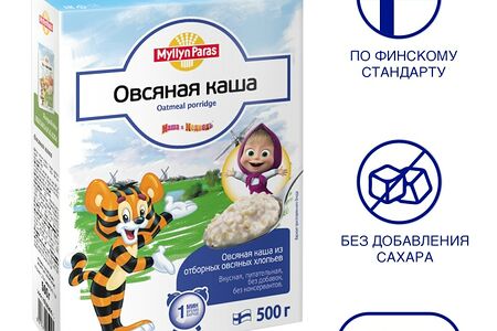 Каша Myllyn Paras Овсяная 500г производится из отборных цельных зерен овса, расплющенных в тонкие хлопья. Она не содержит искусственных добавок, ароматизаторов и консервантов. В ней много пищевых волокон, способствующих очищению кишечника и хорошей работе ЖКТ, есть природные витамины С, К, Е, PP, B1, B2 и B6, а также полезные минеральные вещества. Готовится такая каша быстро и просто: вам нужно вскипятить 1 стакан воды или молока, всыпать 1/2 стакана хлопьев, проварить в течение одной минуты и дать немного настояться под крышкой.