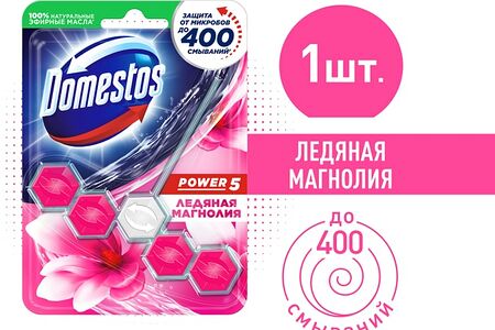 Блок для унитаза Domestos Power 5 Ледяная магнолия защита от микробов и налета 55г доставка