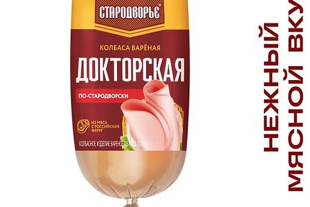 Колбаса Стародворье Докторская По-Стародворски вареная 500г – готовое к употреблению колбасное изделие, которое отлично впишется в рацион всей семьи. Изготовлено из куриного мяса, свинины и говядины с добавлением специй, пряностей, яиц, молока и прочих ингредиентов. Обладает нежным мясным вкусом, имеет плотную однородную текстуру, хорошо сохраняет форму при нарезании, легко очищается от оболочки. Подходит для приготовления бутербродов, салатов, закусок, солянки, омлетов. Продукция «Стародворье» производится в соответствии с международными стандартами качества на современном оборудовании, а тщательно подобранное сырье и традиционные рецепты, проверенные временем, делают ее по-домашнему вкусной.
