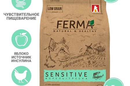 Сухой корм для котов и кошек Ferma Sensitive Форель треска 1.5кг доставка