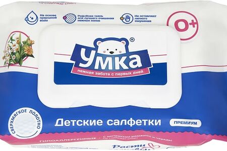 Салфетки влажные Умка Премиум детские 72шт подходят для очищения самой чувствительной кожи малышей. Мягкая и плотная рифлёная ткань идеальна при смене подгузника. Содержат натуральные экстракты ромашки и череды и обеспечивают противовоспалительное, антисептическое и увлажняющее действия. Качественный клапан выдерживает многократное использование. Увлажняющий лосьон не содержит спирта, красителей, силиконов. Способ применения: открыть клапан и извлечь салфетку. Использовать по назначению. Во избежание высыхания салфеток после применения плотно закрыть клапан. Салфетки предназначены для одноразового использования.