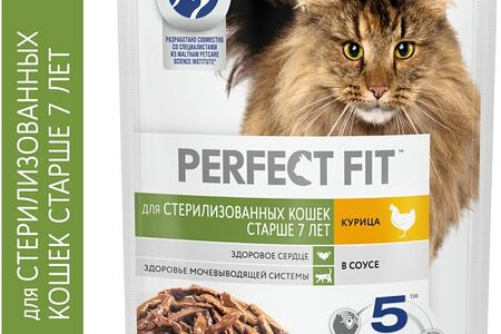 Влажный корм для стерилизованных кошек старше 7 лет Perfect Fit полнорационный с курицей в соусе 75г доставка