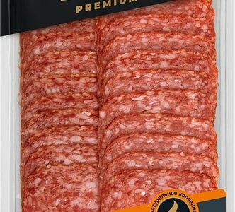 Сведения о составе: Филе куриное, свинина, шпик, соль, мальтодекстрин, виноградный сахар, усилители вкуса и аромата (глутамат натрия 1-замещенный, 5-рибонуклеотиды натрия 2-замещенные), натуральные специи (перец, имбирь), антиокислитель (изоаскорбат натрия), ароматизаторы, лук, чеснок, мука горчицы, сироп глюкозы, краситель (кармины), стартовая культура, фиксатор окраски-нитрит натрияПищевая ценность: 421,20,37,2Условия хранения: 12,2Срок годности в днях: 90Страна изготовления: РоссияСведения об упаковке: Вакуумная упаковкаПроизводитель: Черкизовский МПЗ