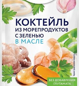 Коктейль из морепродуктов Меридиан в масле с зеленью 200г производится из кальмаров, мидий, осьминогов и креветок, выловленных у юго-западного побережья Латинской Америки, в северных водах Тихого океана и теплых морях Юго-Восточной Азии. Отборное сырье очищается и обрабатывается по современным технологиям, позволяющим максимально сохранить аккуратный внешний вид и уникальный вкус продукта. Отварные морепродукты в пряной заливке из растительного масла с петрушкой, паприкой и чесноком - это готовый к употреблению деликатес, который можно сразу подавать к столу в качестве изысканной закуски или использовать для приготовления легких салатов и горячих блюд.