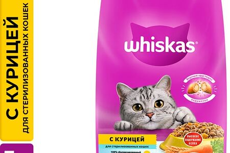 Сухой корм для стерилизованных кошек Whiskas с курицей и вкусными подушечками 5кг доставка