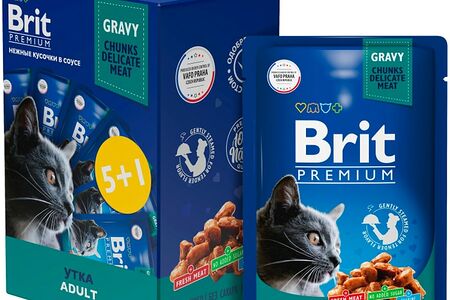 Набор влажного корма для кошек Brit Premium Утка в соусе 85г*5+1шт доставка
