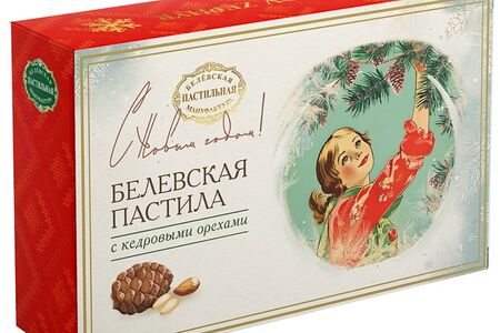 Пастила Белевская пастила с кедровым орехом 200г производится по старинной русской технологии: сначала яблоки запекают в печи, потом снимают шкурку и отделяют мякоть, которую взбивают с сахаром и яичным белком. В воздушную смесь добавляют орехи и запекают пластами. Промазывают белком, обрезают края и посыпают сахарной пудрой. Пастила обладает приятным кисло-сладким вкусом с нежными кедровыми нотками. Появилась она в конце 19 века в России, ее создал купец Амвросий Прохоров: он собрал десяток народных способов приготовления этого лакомства, обобщил и получил универсальный рецепт, который практически не изменился и по сей день. Белевская пастила является традиционным русским десертом, который очень популярен как в России, так и в Европе.